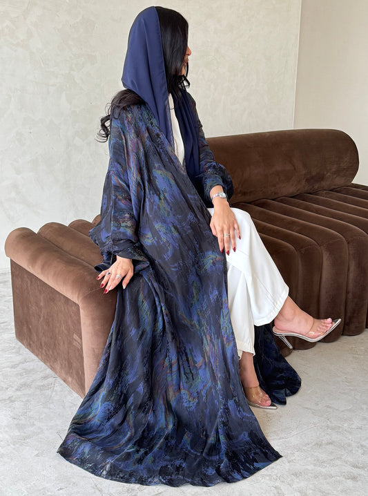 FAB156- Blue Swirl Marble Jacquard Abaya