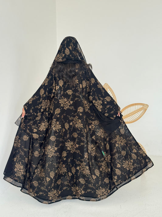 FAB221- Black Swirl with Gold Shimmer Chiffon Abaya Set