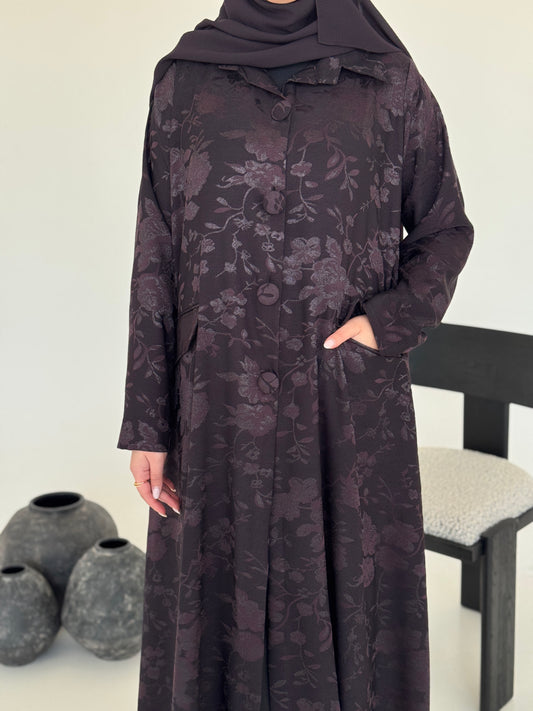 FAB237- Purple Floral Silk Jacquard Blazer A-Cut Abaya