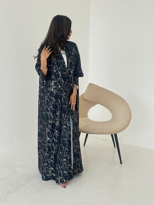 FAB228-Navy Blue Textured Classic Jacquard Abaya with headscarf