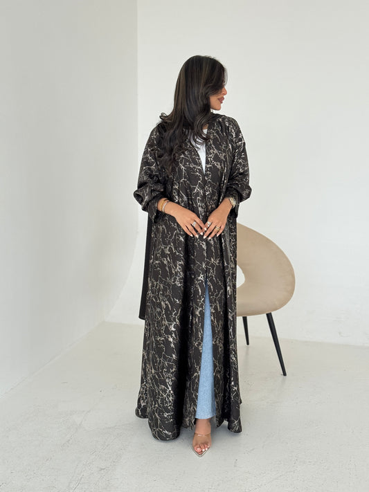 FAB226-Black Textured Classic Jacquard Abaya with headscarf